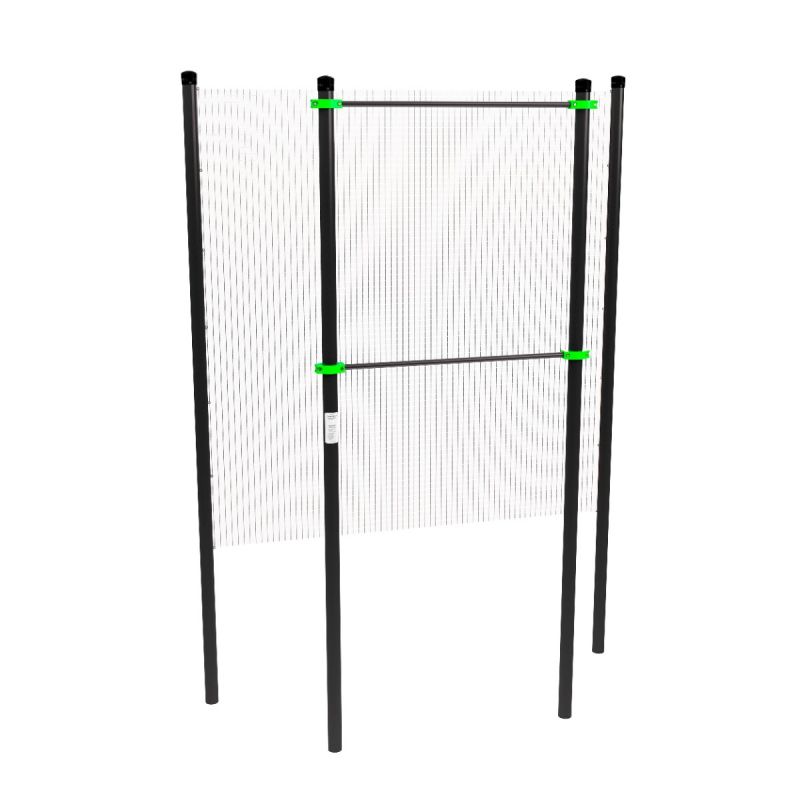 - В состав комплекса входят четыре опорных столба: два высотой 4150 мм и два (с крепежом для сетки) высотой 4200 мм.